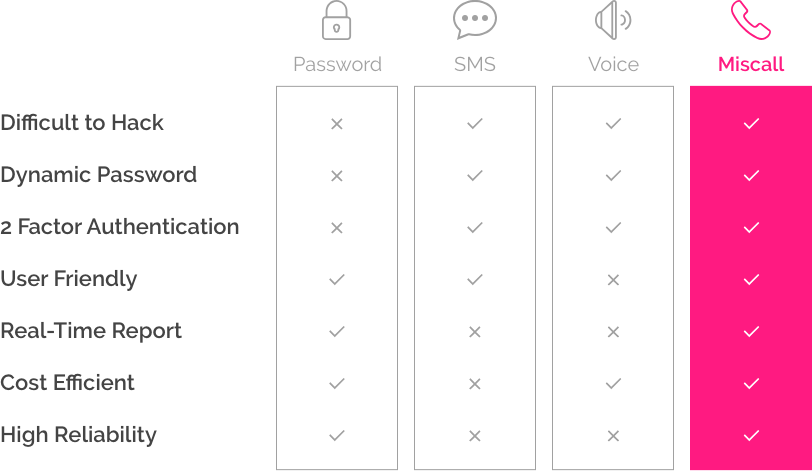 We have the solution for your verifications system needs. Whether you use One Time Password, 2-Factor Authentication, or others, our Miscall system makes it simple, easy, and scalable.